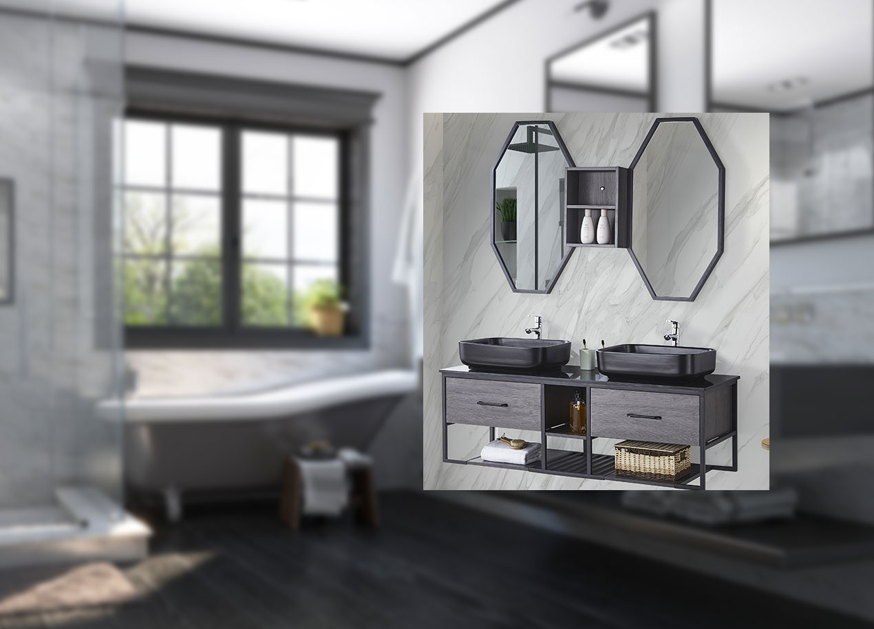 Nous avons une solide équipe de R & D, et nous pouvons développer et produire des produits de vanité de salle de bain selon les dessins ou les échantillons proposés par les clients.